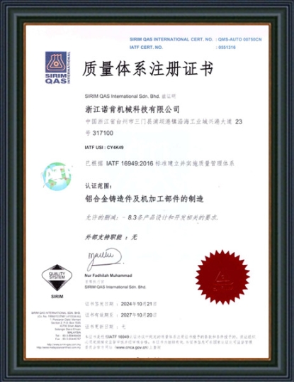 浙江諾肯機(jī)械科技有限公司(原黃巖新興機(jī)械配件有限公司)成立于1983年,坐落于浙江省東海之濱臺州市三門縣沿海工業(yè)城,現(xiàn)有員工160余人,總體占地面積40000平米。公司秉承“誠信為本、精工細(xì)作”的精神,現(xiàn)已發(fā)展成為集研發(fā)、制造及營銷為一體的鋁合金精密鑄件生產(chǎn)基地,為客戶提供精密鑄造、熱處理和精密機(jī)加工的一體化解決方案。